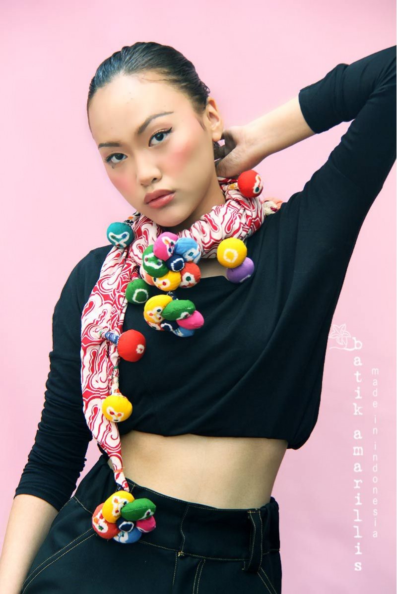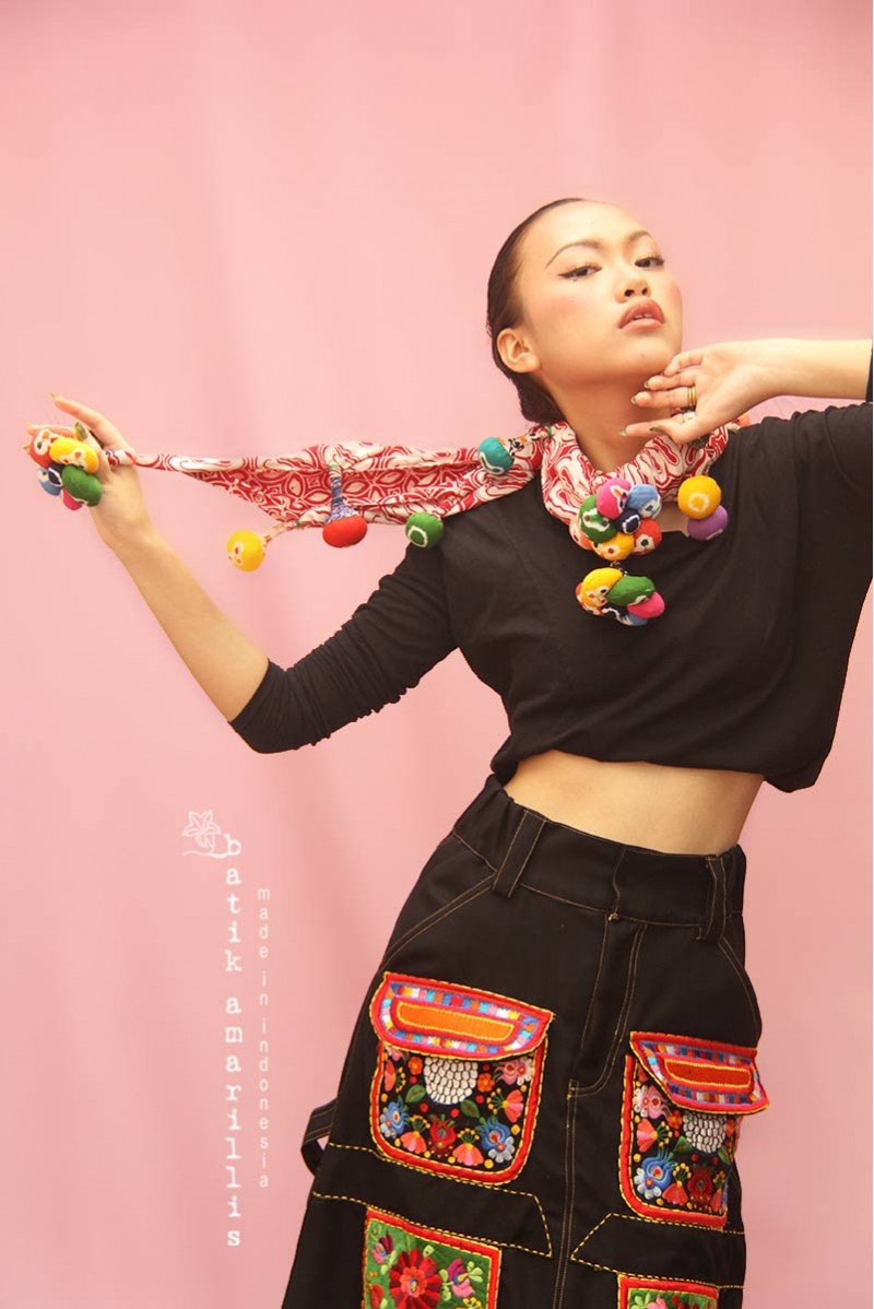 this unique 2 sided scarf is accented with our signature "jumputan" 'Lollies' and flower, this scrumptious shawl is your best accessories for all year round!