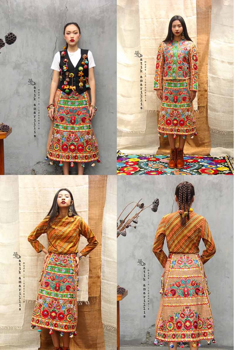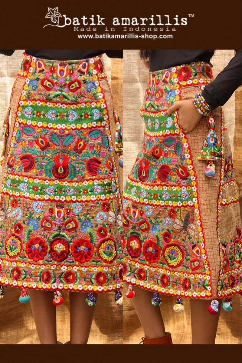 crafted with SUPER RARE tenun ‘usik’ ‘ lowo’ meaning the brown colored is picked from the rare brown cotton flower while it hand woven together with two other threads red and white so this has special texture, rarity! also features beautiful Hungarian embroidery folk motifs and our trademark lollies.