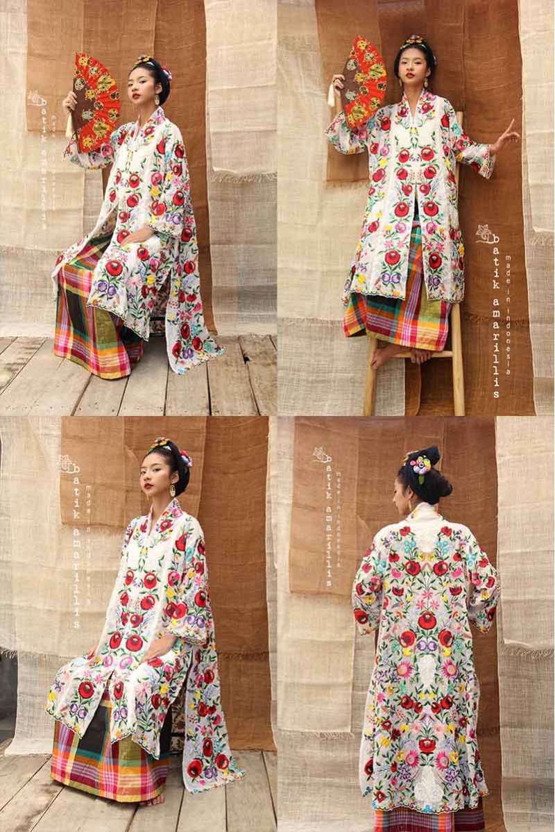 this beautiful combo of Javanese Kebaya and Minang’s Baju Kuruang inspired is yet elegant and comfy which also features Hungarian’s Kalosca embroidery motifs on sheer and flowy Cotton rubia