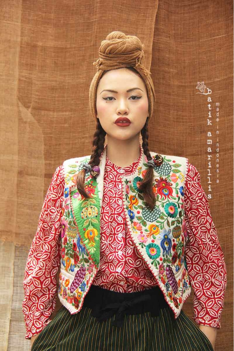 Traditional Javanese men cropped vest inspired, with its compact & slimming silhouette. Wear it over high waisted pants/ skirt/sarong also you can open the button and the look will change into laid back style! Features refreshing floral embroidery on raw hand woven (tenun gedog Tuban ) of East Java