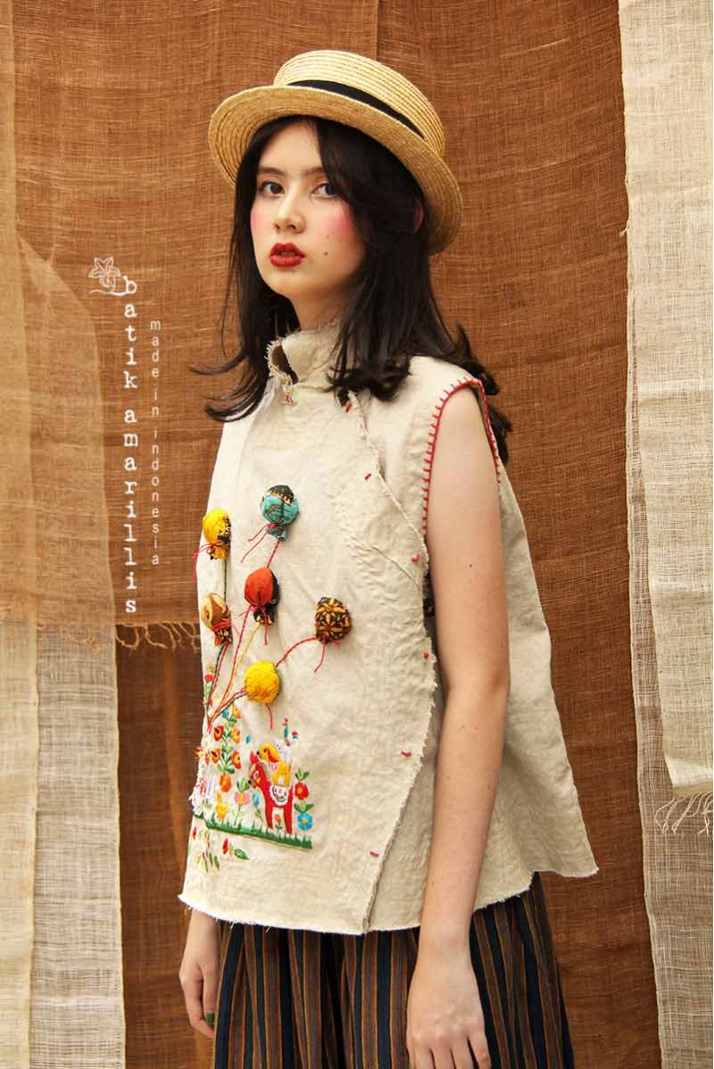 Features adorable folklore embroidery and batik scraps at our workshop, it becomes a quintessential of ours such as emphasizing in handmade sustainability & ethical production