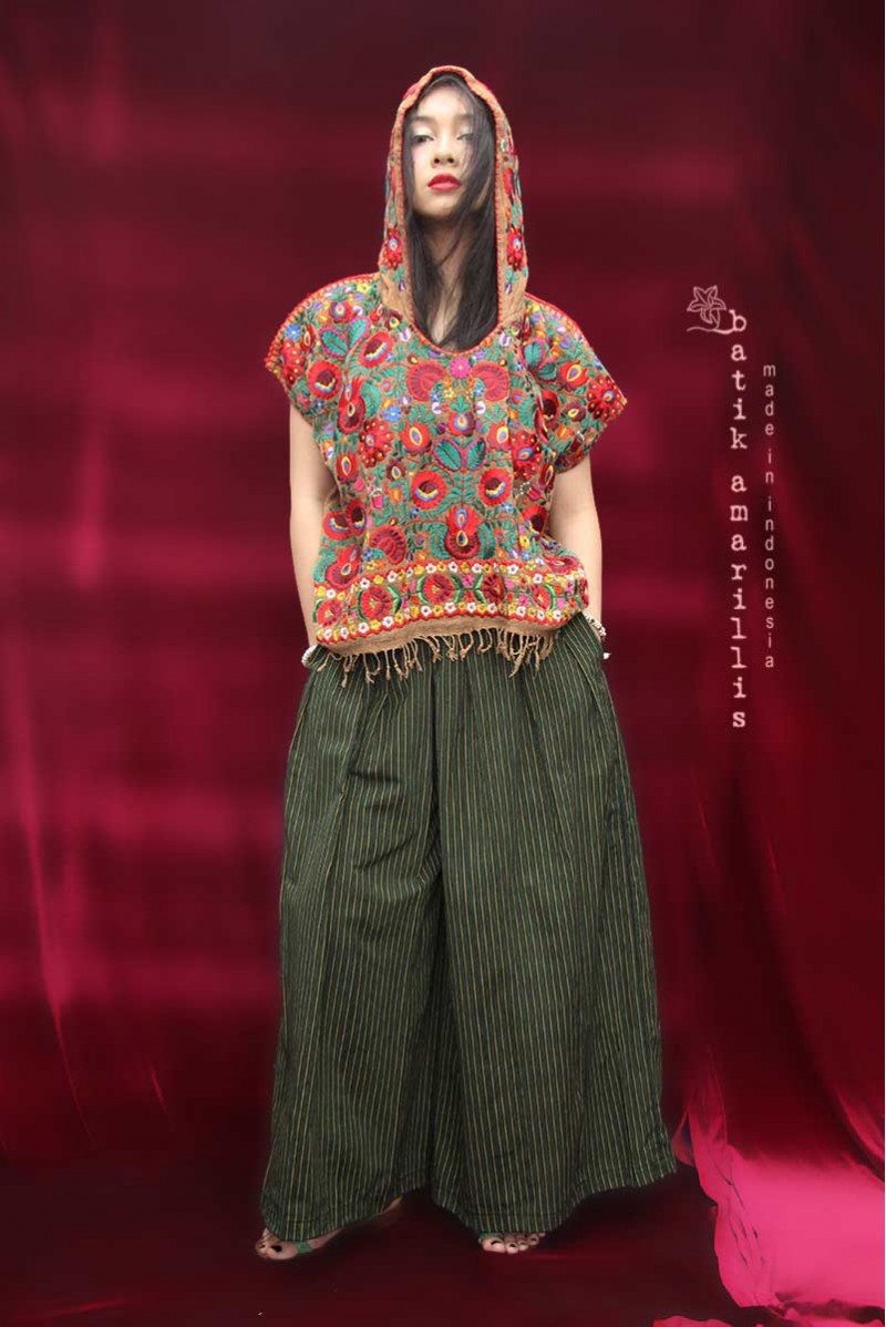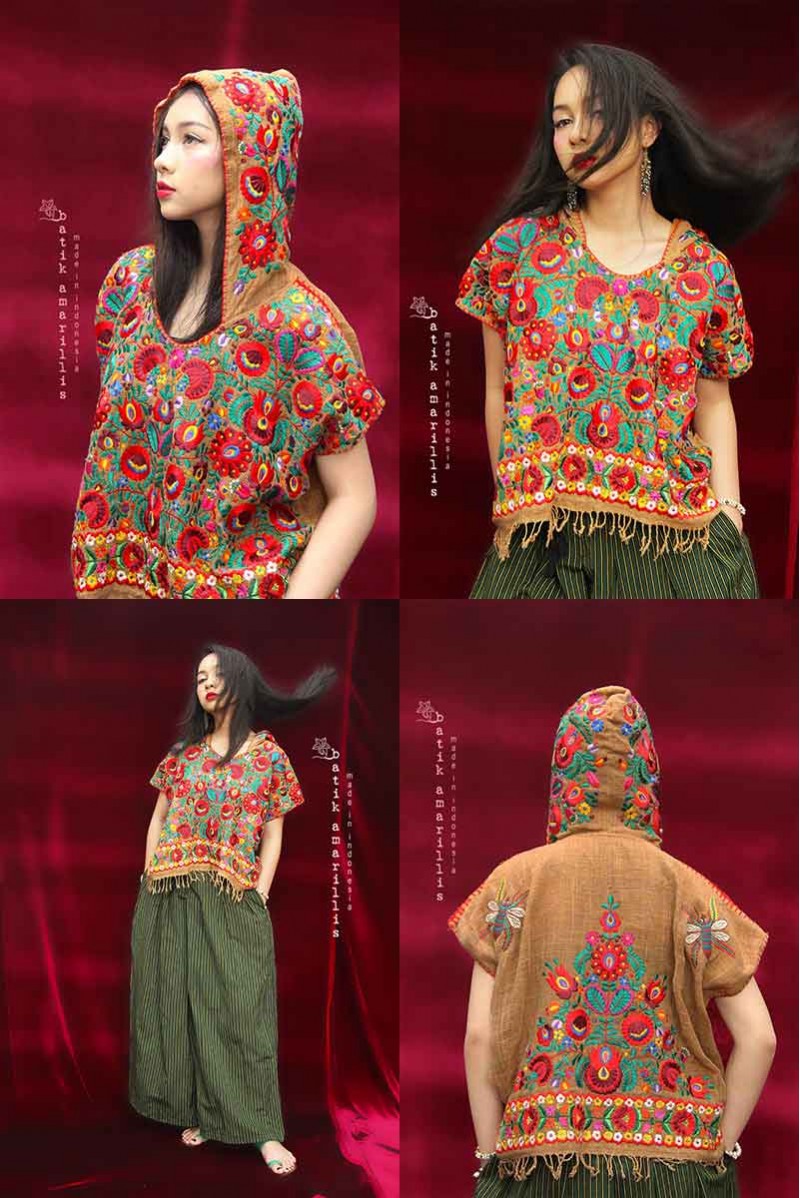 little Nineveh hoodie top, romantically beautiful sheer hoodie top which features raw and sheer tenun seseran gedog lowo Tuban with full Hungarian embroidery inspired - meticulously adorned with hand stitched and hand knitted